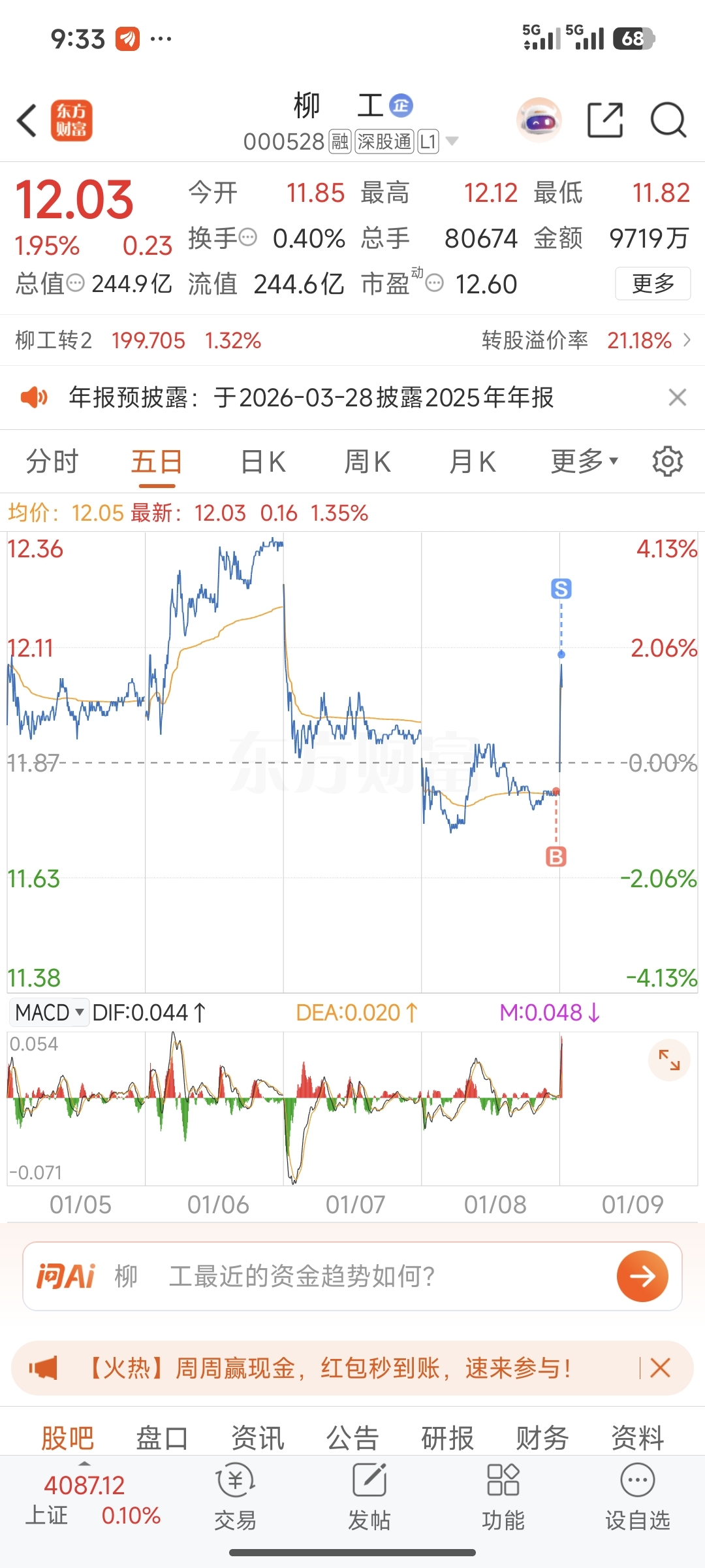 $柳 工(SZ000528)$ 跑的快。2.5个点