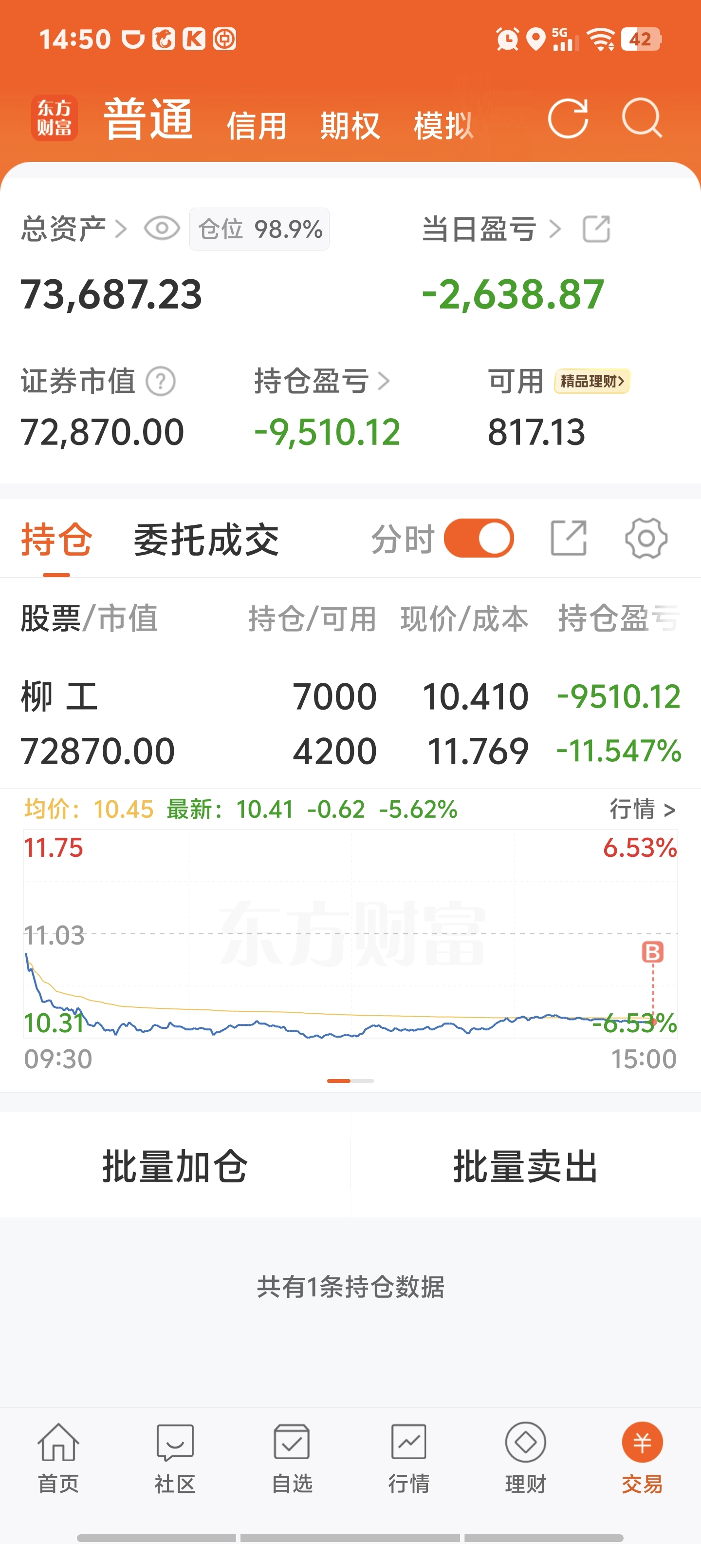 $柳 工(SZ000528)$ 为维护股价稳定 本人加仓三万元 如继续大跌 本人承诺 继续增持 让暴风雨来的更刺激些吧