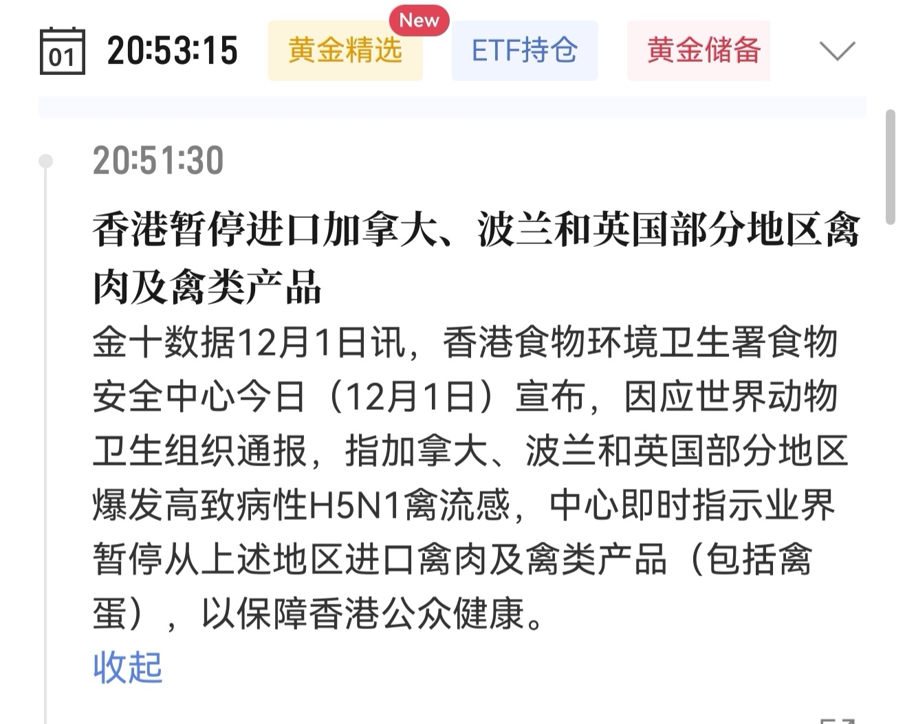 $广弘控股(SZ000529)$ 香港暂停进口加拿大、波兰和英国部分地区禽肉及禽类产品