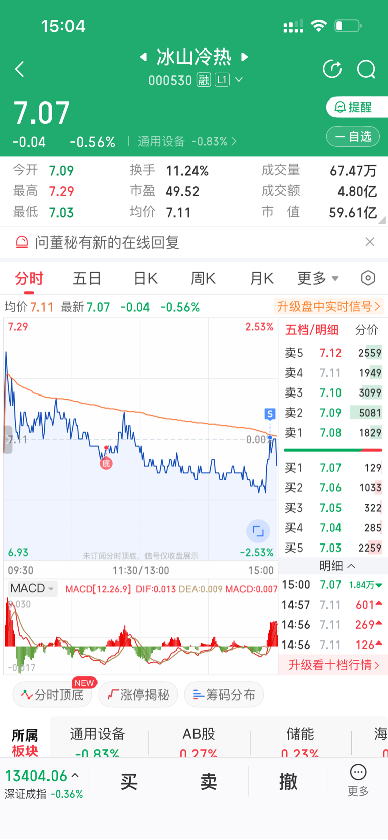 $冰山冷热(SZ000530)$ 怪我挂的条件单,要不然尾盘就红了!