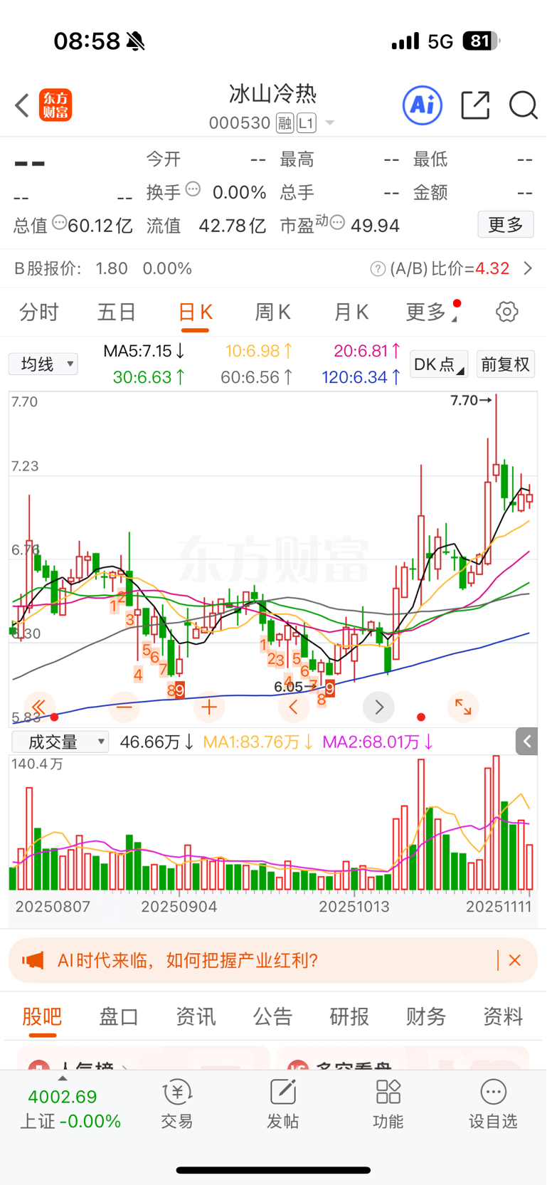 $冰山冷热(SZ000530)$ 卖了中能买了你,想死的心都有了