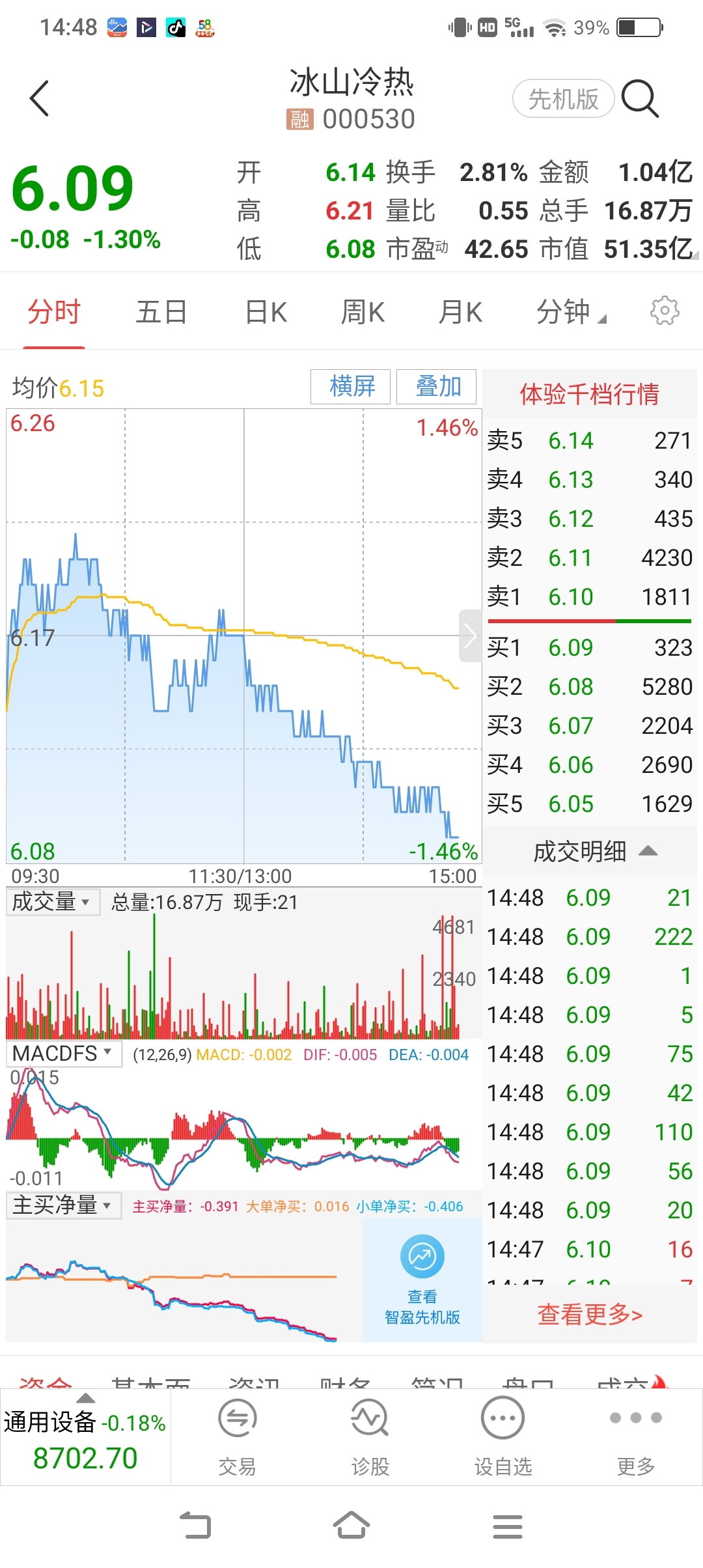 $冰山冷热(SZ000530)$ 看这孙子,一分一分往下移,死咸鱼一条