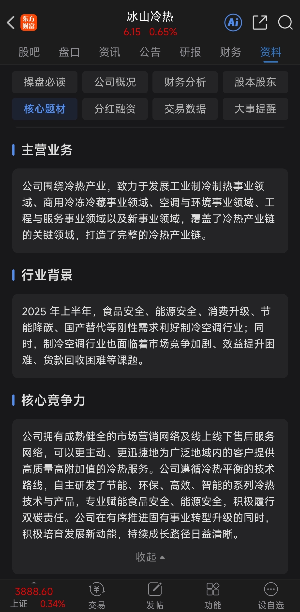$冰山冷热(SZ000530)$ 冰山冷热2025年核心概念(图)