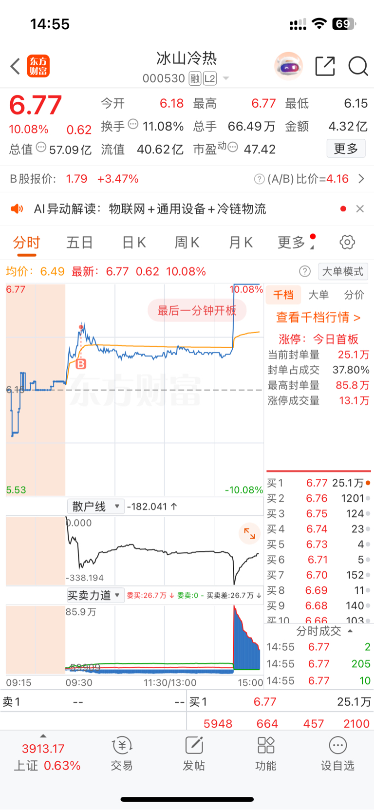 $冰山冷热(SZ000530)$ 还以为你把我挂天上