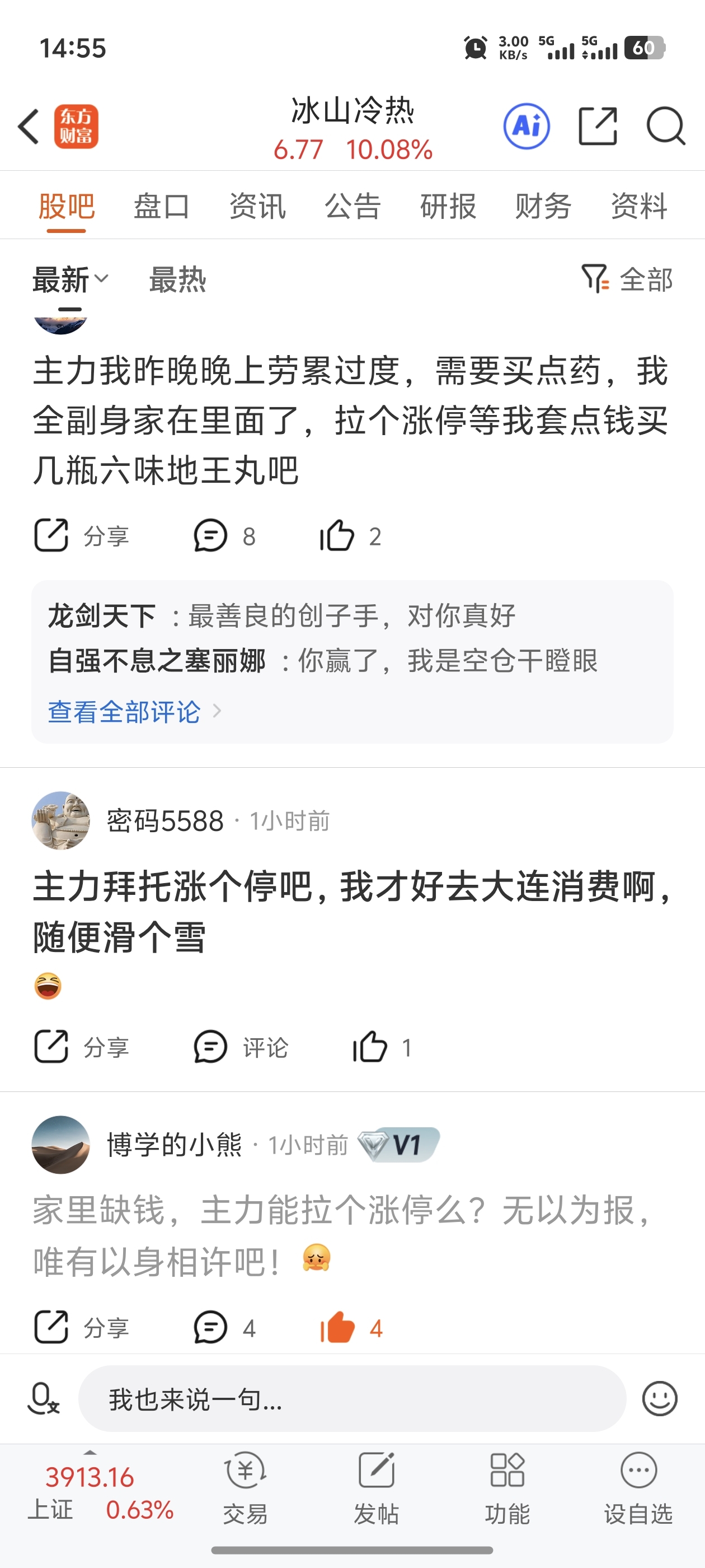 温馨提示: 1.根据《证券法》规定,禁止编造、传播虚假信息或者误导性信息,扰乱证券市场;2.用户在本社区发表的所有资料、言论等仅代表个人观点,与本网站立场无关,不对您构成任何投资建议。用户应基于自己的独立判断,自行决定证券投资并承担相应风险。《东方财富社区管理规定》