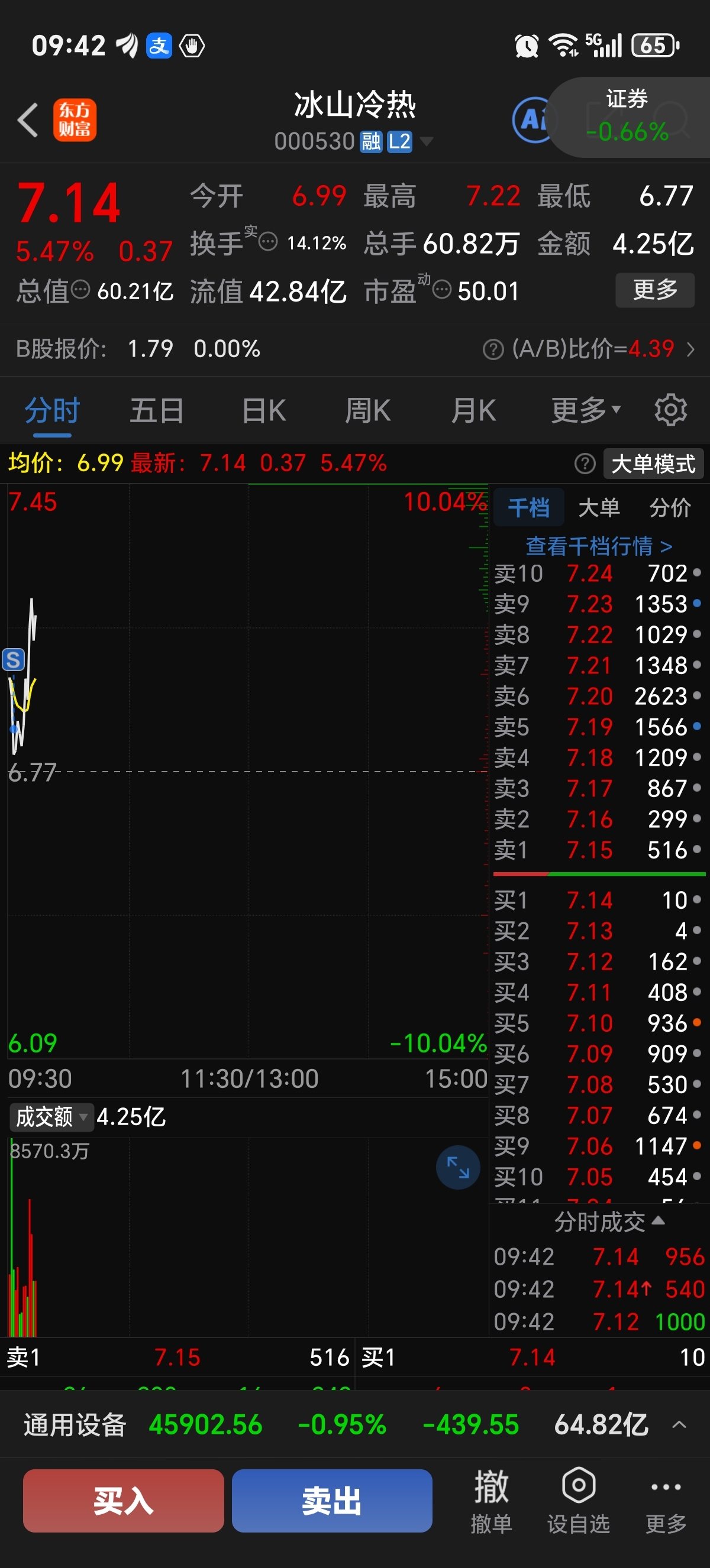 $冰山冷热(SZ000530)$ 有本事来个涨停