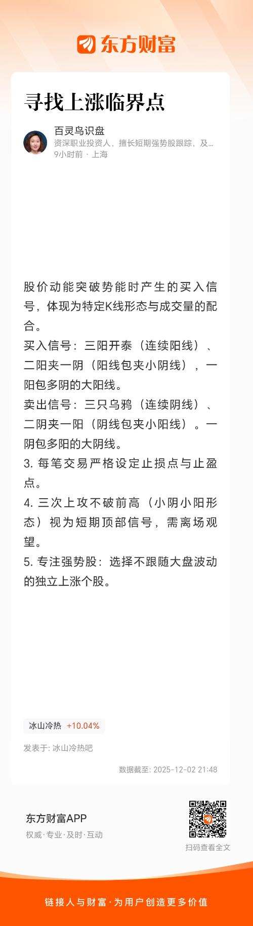 5. 专注强势股:选择不跟随大盘波动的独立上涨个股。
