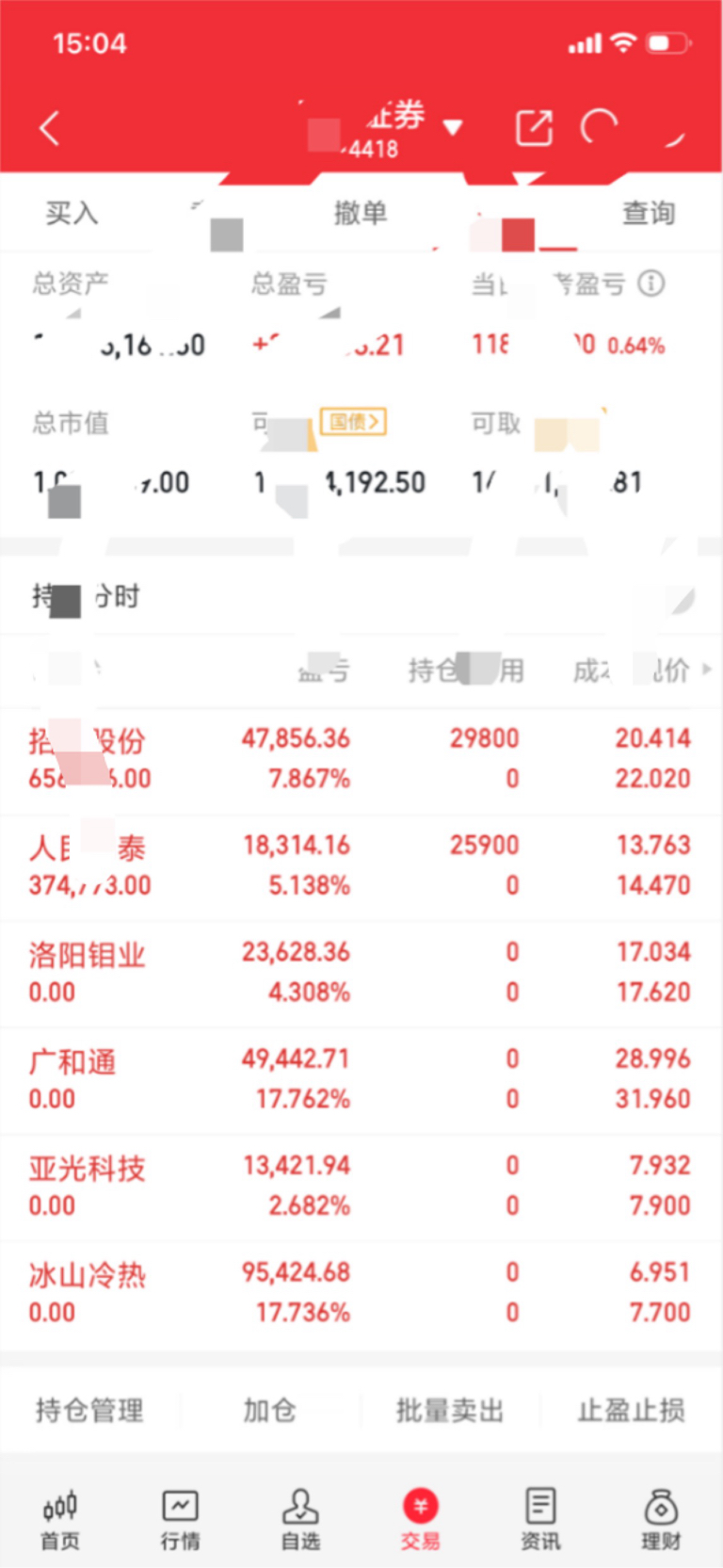广和通、洛阳钼业、亚光科技、$冰山冷热(SZ000530)$ 。 已卖出