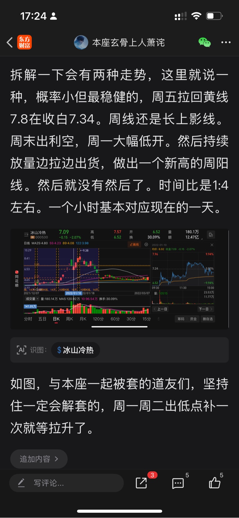 这还不够直白,随行就市,他怎么走,我怎么唱,他还不能有点脾气。7.8之上没想道摸了涨停,强势,不收白强势。周线不收大阳线封板弱势,他就这个样子,你猜的准了。选择中性走法不给方向,其实就是给了方向,盛极而衰,不拉得火热一般死不了,你说冲高机会那肯定有,那次不是连板出一字后在做天地嘎的。但是怎么个冲高,回撤个十几个点再冲也是冲,现在冲也是冲。看这盘面下菜碟。24年至少三次,不出一字板这个主力不会玩出货,他就这个实力,一定要看到,封单上有足够的有缘人予之。你要是没有L2你都不知道他在想什么。你这个性格,劝你股吧里的话别信,知道的不会说,能说的都是都是泥菩萨。你看到的准确都是被安排的。来这里就是图个乐,大多数来这里的都是找平衡来的。最后,既然中性走法那就不见一字板不减仓,不见第二个一字板不清仓。这个够直白吧,不过没用要给一字板周三就给了,周五就崩了,随行就市都在等有缘人予之。 //@本座玄骨上人萧诧 :要理解为而不攻,可以套他们在山顶的,为什么不下手,8.20几次冲上去不封板,这个位置,游资都在盯着追板,大主力一封跟风入潮水一般,一撤单鸟兽散。都武装到了牙齿,不好收割了,谁能承接的时候基本就到头了。瞎t这玩吧,等待有缘人予之。