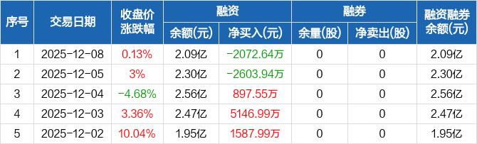 冰山冷热:融资净偿还2072.64万元,融资余额2.09亿元(12-08)