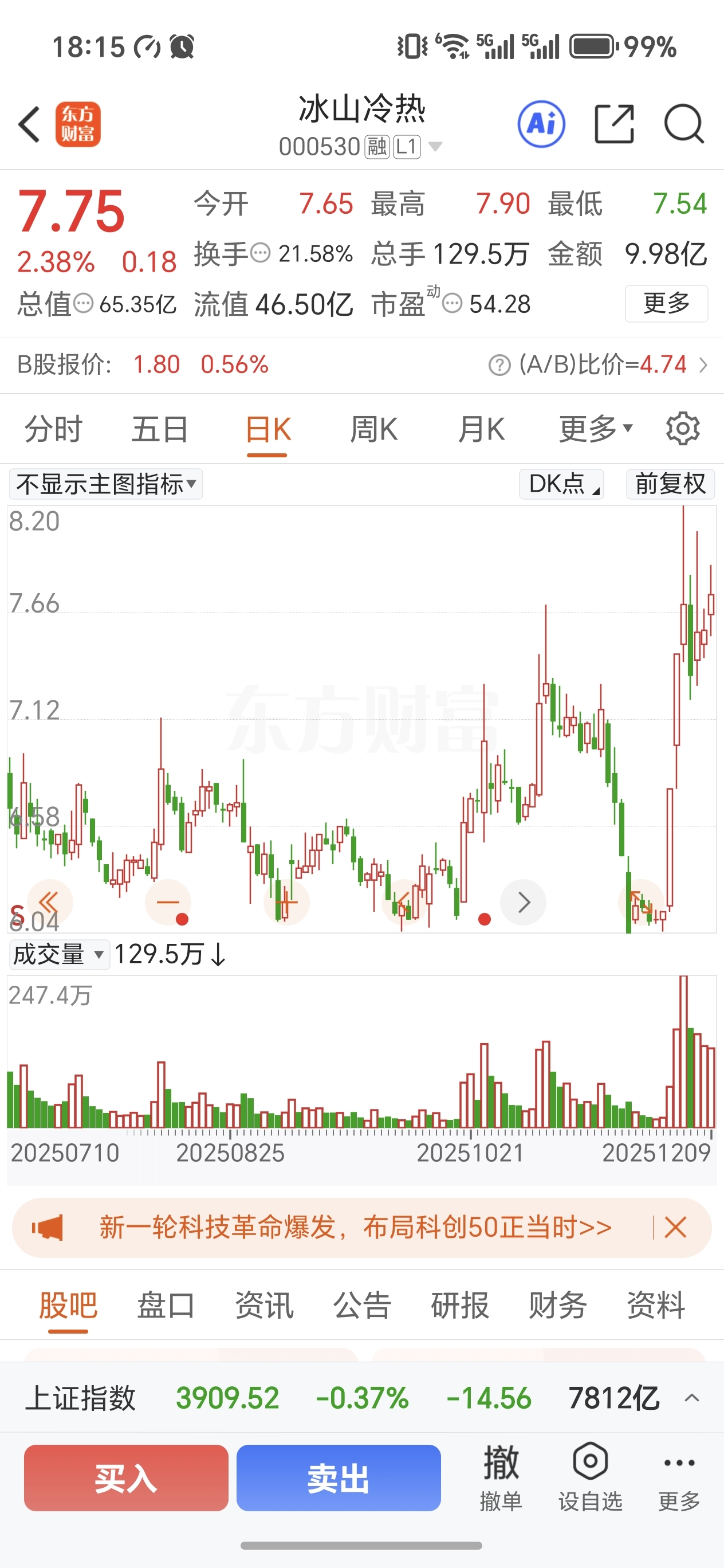 $冰山冷热(SZ000530)$ 这玩意明天要么高开涨停,要么低开一条大阴线下去
