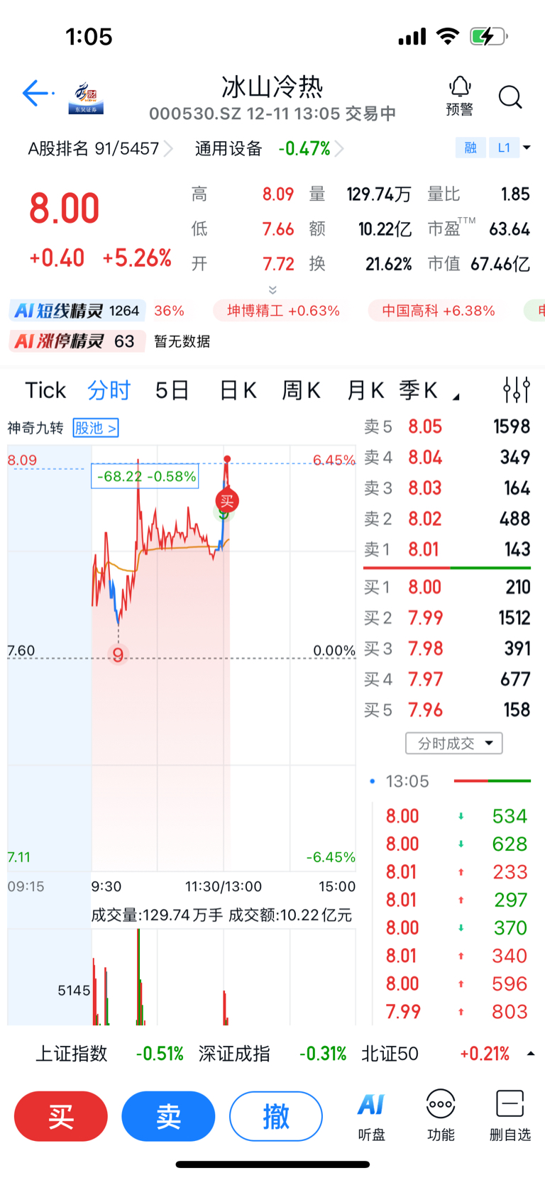 $冰山冷热(SZ000530)$ 有比我高的吗?