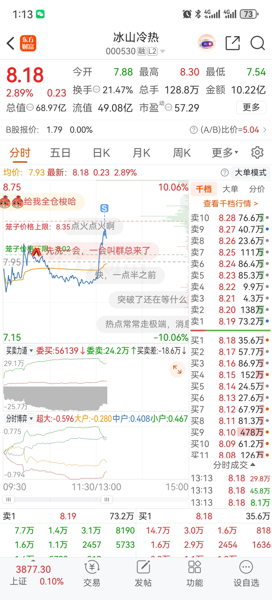 $冰山冷热(SZ000530)$ 不好意思,我清仓了,影响不大的