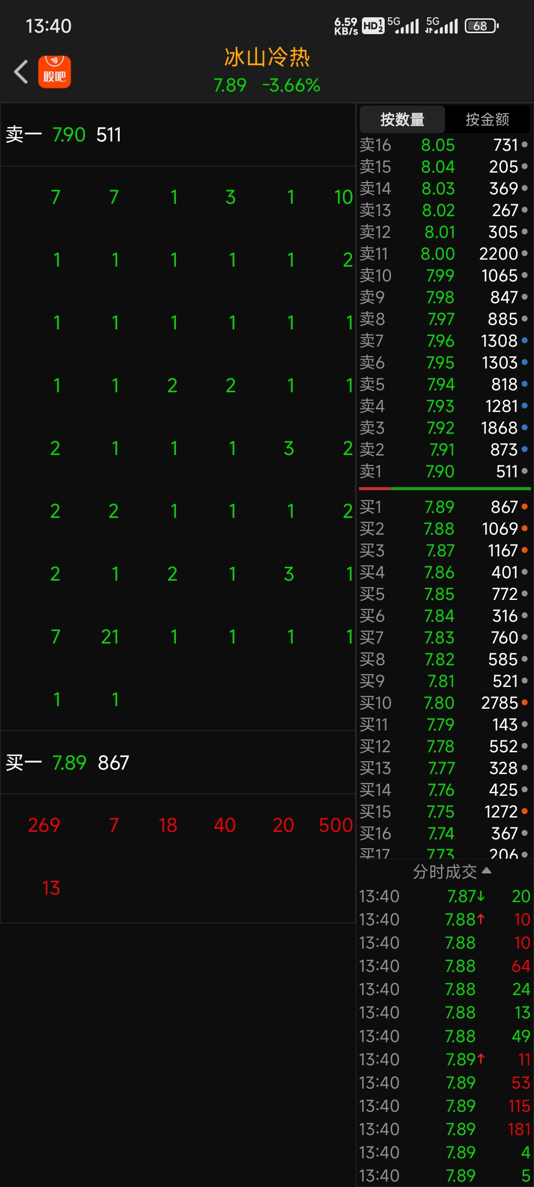 $冰山冷热(SZ000530)$ 好几档都是量化卖单