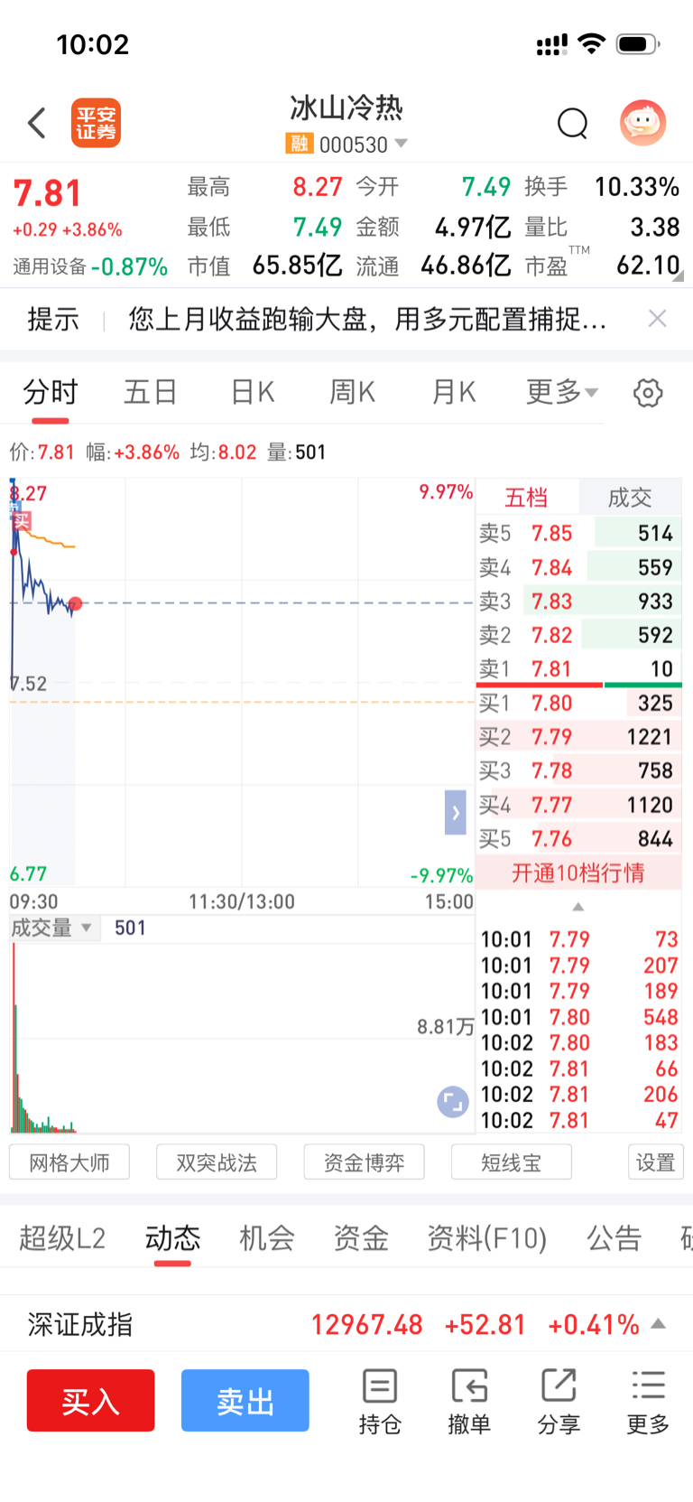 $冰山冷热(SZ000530)$ 8.27卖,8买回,买的有点早,不过不影响继续涨
