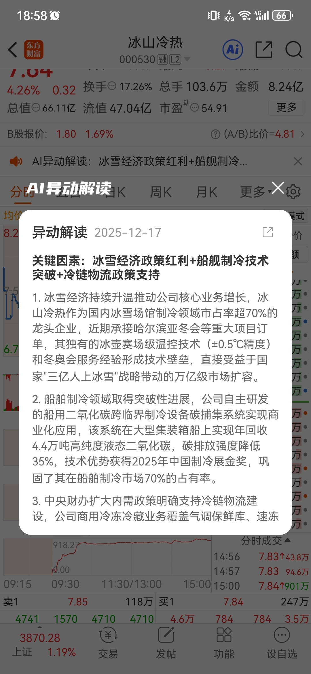 $冰山冷热(SZ000530)$ AI 异动解读,看明天表现了
