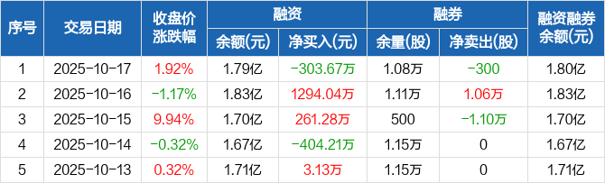 穗恒运A:融资净偿还303.67万元,融资余额1.79亿元(10-17)