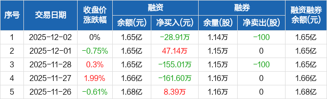 穗恒运A:融资净偿还28.91万元,融资余额1.65亿元(12-02)