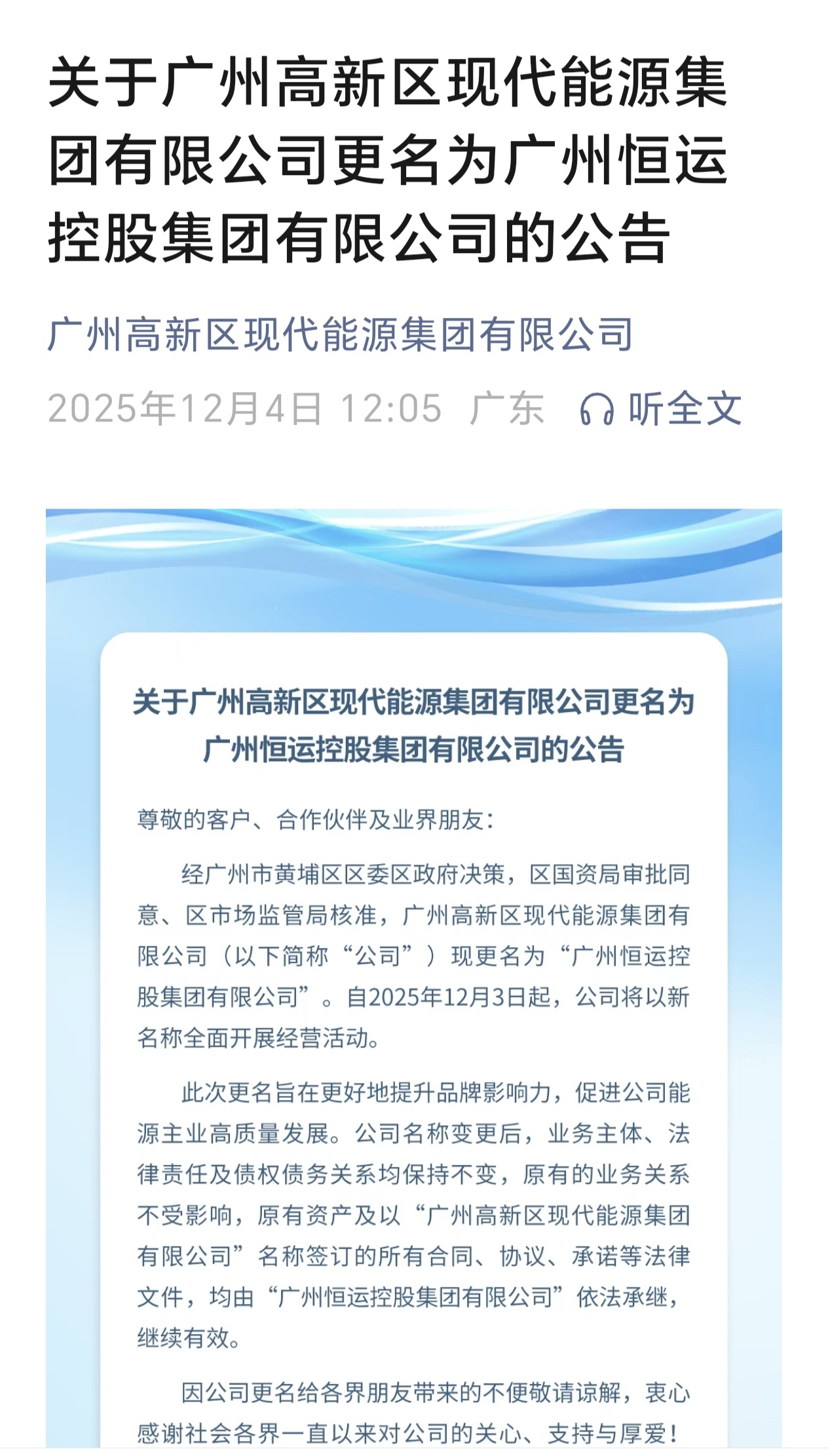 $穗恒运A(SZ000531)$ 投资者呼吁了这么久的上市公司改名没动静,结果是控股股东把名字改了,死磕“恒运”