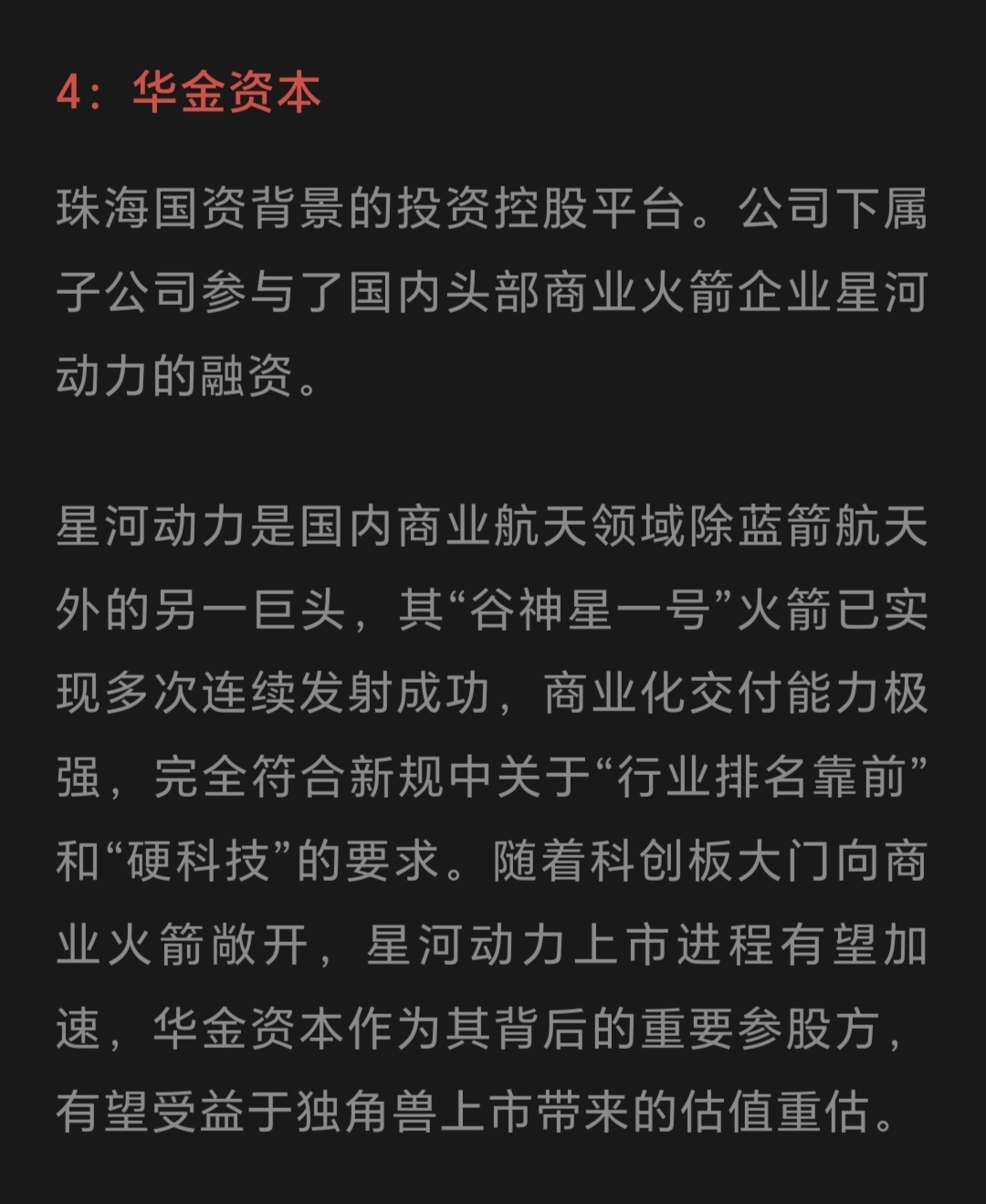 $华金资本(SZ000532)$ 参股星河动力
