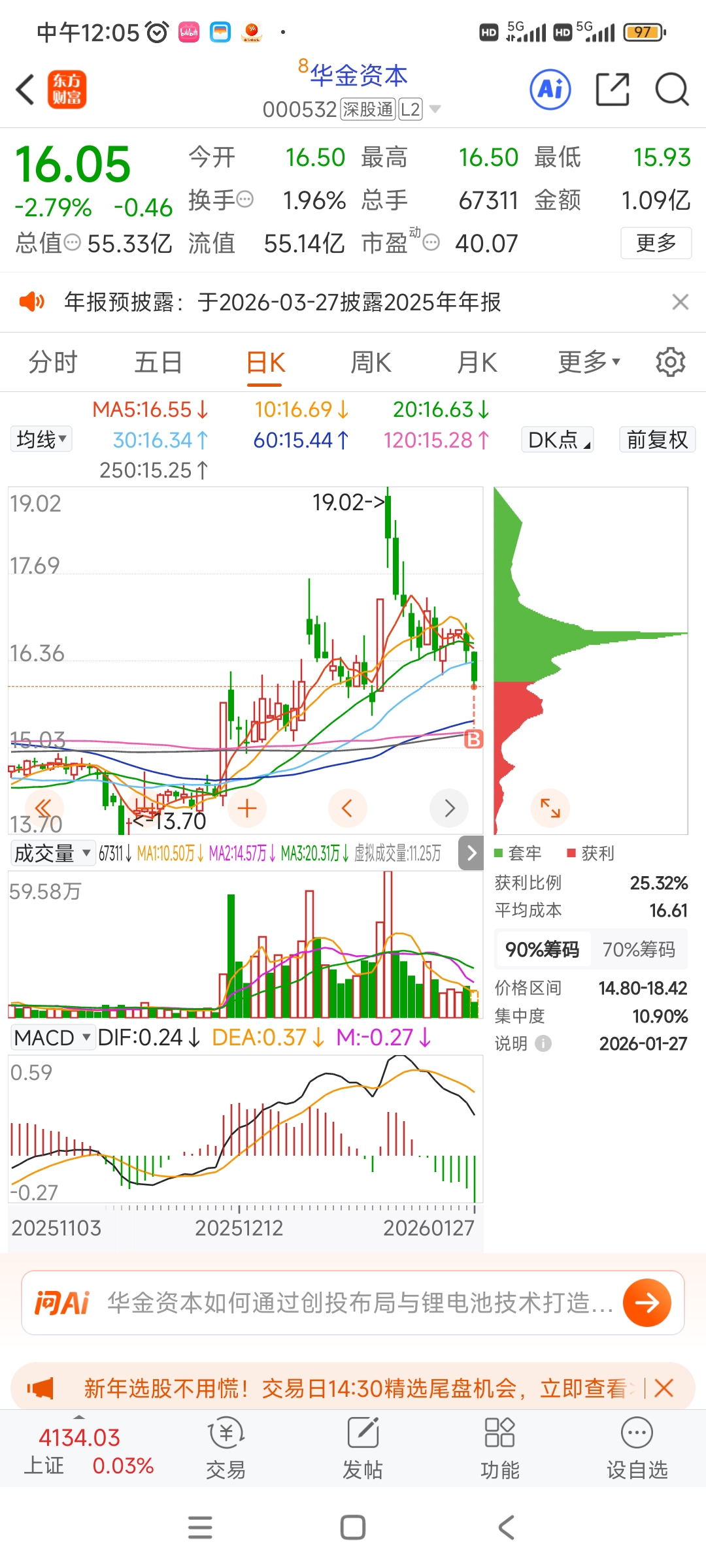 $华金资本(SZ000532)$ 隔夜单15.96已买入