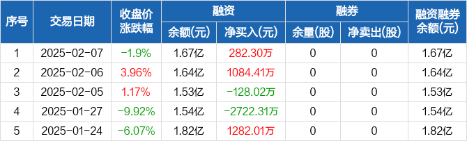 顺钠股份:融资净买入282.3万元,融资余额1.67亿元(02-07)