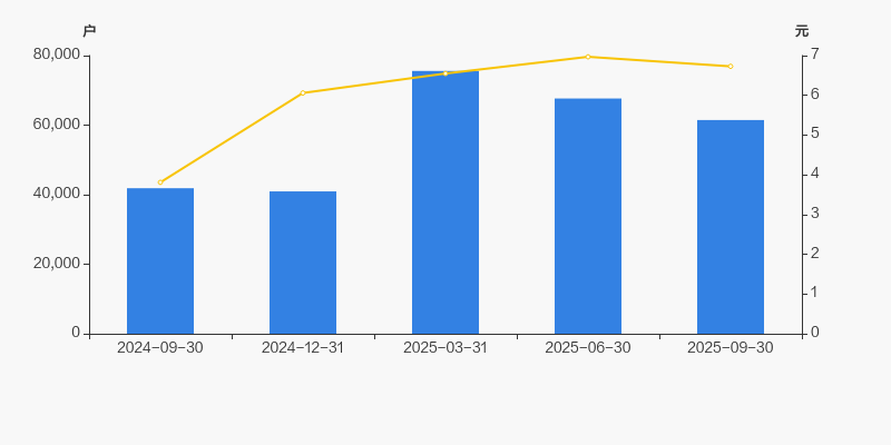 2024年9月30日至今,公司股东户数显著增长,区间涨幅为46.84%。2024年9月30日至2025年9月30日区间股价上涨76.64%。