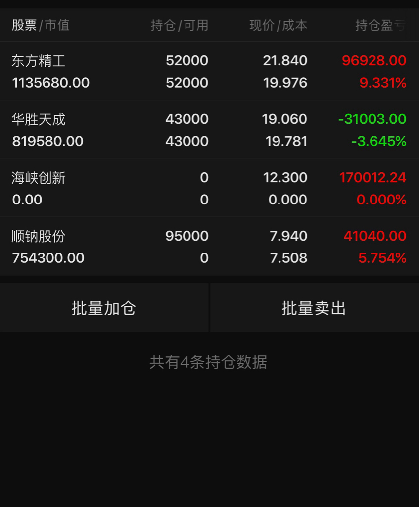 东方精工早盘开盘盘中时针震荡起伏较大继续持有看明天如何演绎,华盛天成今早开盘水下横盘继续等待,海峡创新水下开盘随后拉升冲高指数翻红不在格局落袋为安,今天上午尾盘就在观察者顺钠股份临近尾盘拉升给了入手机会午后资金进入拉升涨停看明天如何演绎。#收盘点评# $顺钠股份(SZ000533)$