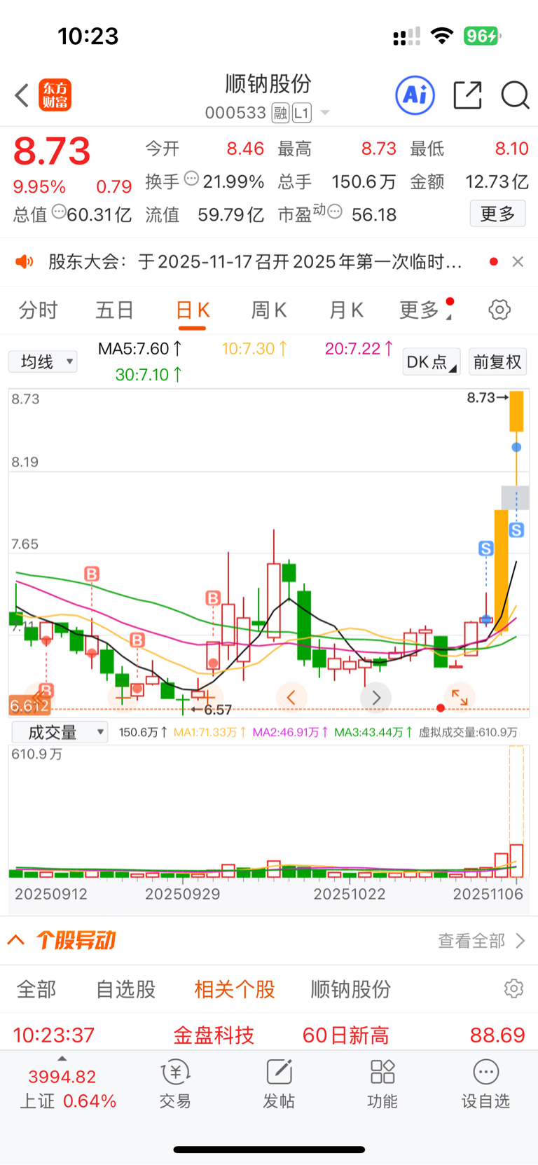 $顺钠股份(SZ000533)$ 最近亏太多了,稍微红一点就卖了,涨停前出一一半,今天全出完了。连续亏的心态不好了