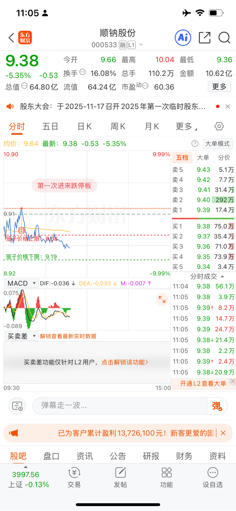 $顺钠股份(SZ000533)$ 慢一秒我都买不到这个价