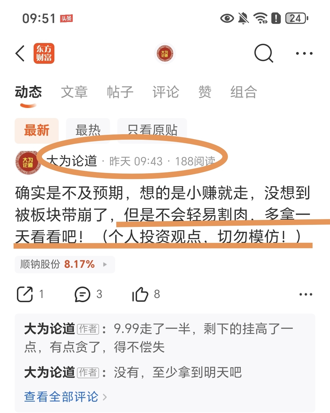 $顺钠股份(SZ000533)$ 昨天大跌的时候就说了不会轻易割肉,这不就来了吗?如果你的模式证明没有问题,就要坚定地贯彻下去。今天来看,因为前面两天套的资金太多了,没有大量也很难涨停,这需要大盘跟板块的配合才可以,看看再说吧!