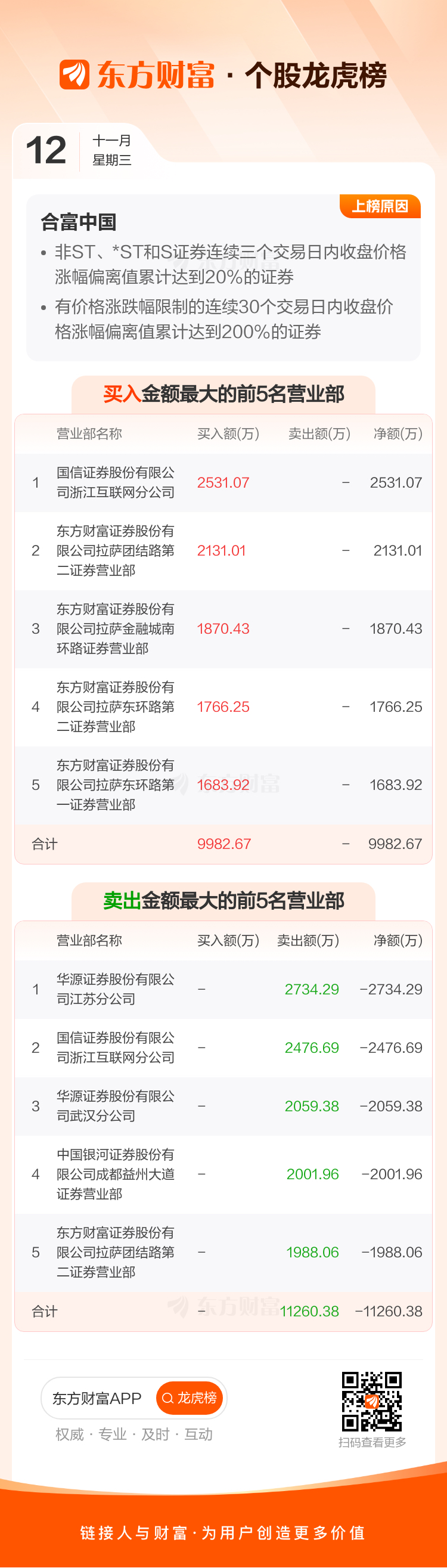 $顺钠股份(SZ000533)$ 这是合富中国11月12日的龙虎斑,12月3日照样拉板,有什么好怕的?成交额近16个亿,龙虎斑拉萨只有1亿,难道剩下的15个亿都是家人们买的?可能吗?