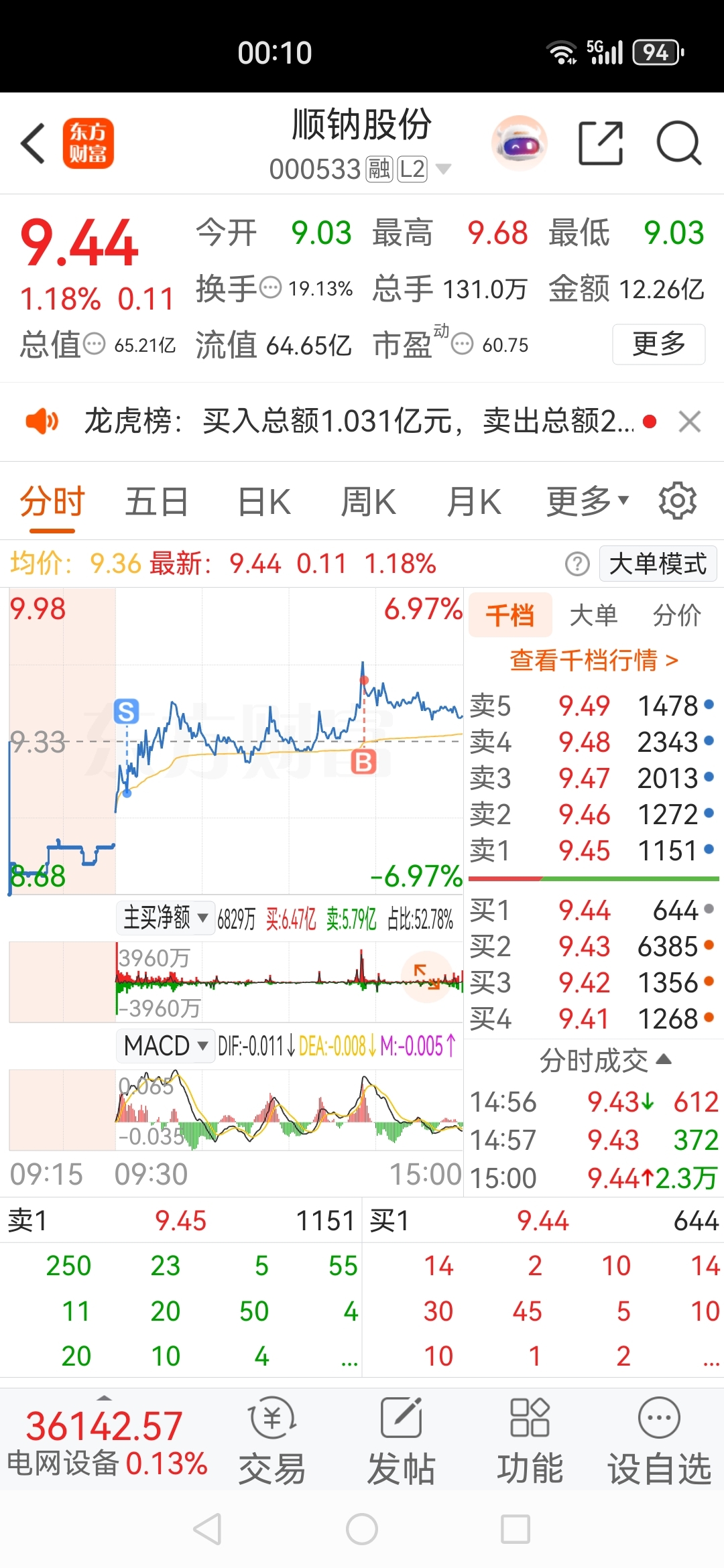 $顺钠股份(SZ000533)$ 不小心把买变成卖了,今天下午接回来些