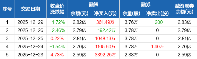 顺钠股份:融资净买入361.49万元,融资余额2.82亿元(12-29)
