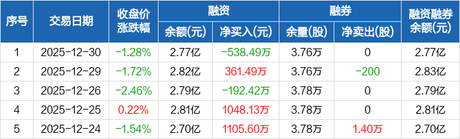 顺钠股份:融资净偿还538.49万元,融资余额2.77亿元(12-30)