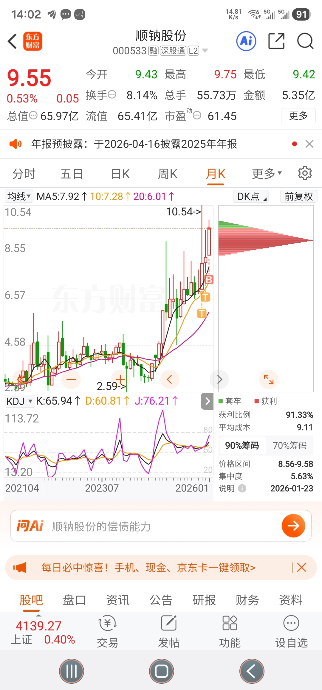 $顺钠股份(SZ000533)$ 这大顶有点怕
