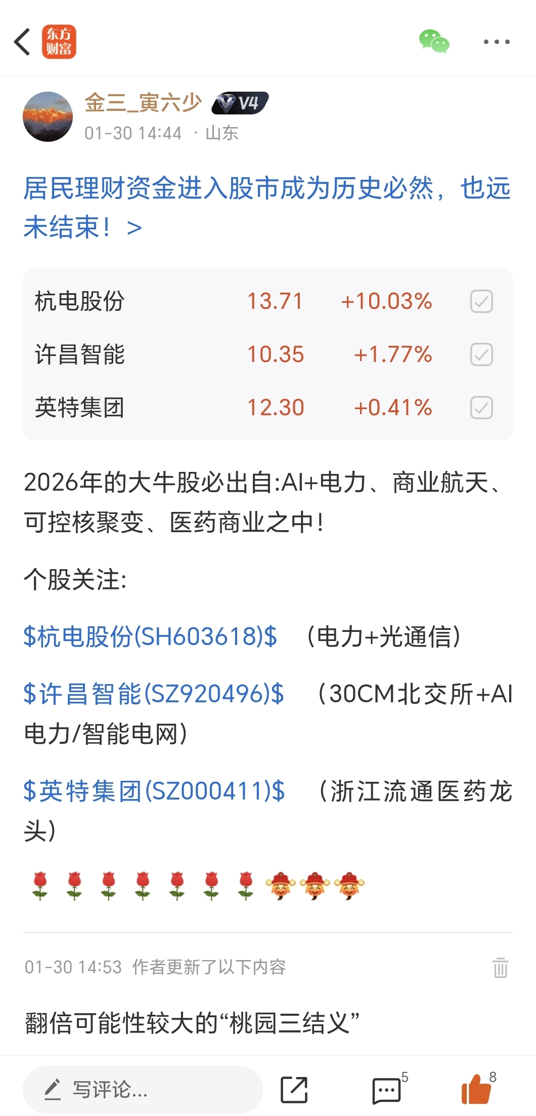 温馨提示: 1.根据《证券法》规定,禁止编造、传播虚假信息或者误导性信息,扰乱证券市场;2.用户在本社区发表的所有资料、言论等仅代表个人观点,与本网站立场无关,不对您构成任何投资建议。用户应基于自己的独立判断,自行决定证券投资并承担相应风险。《东方财富社区管理规定》