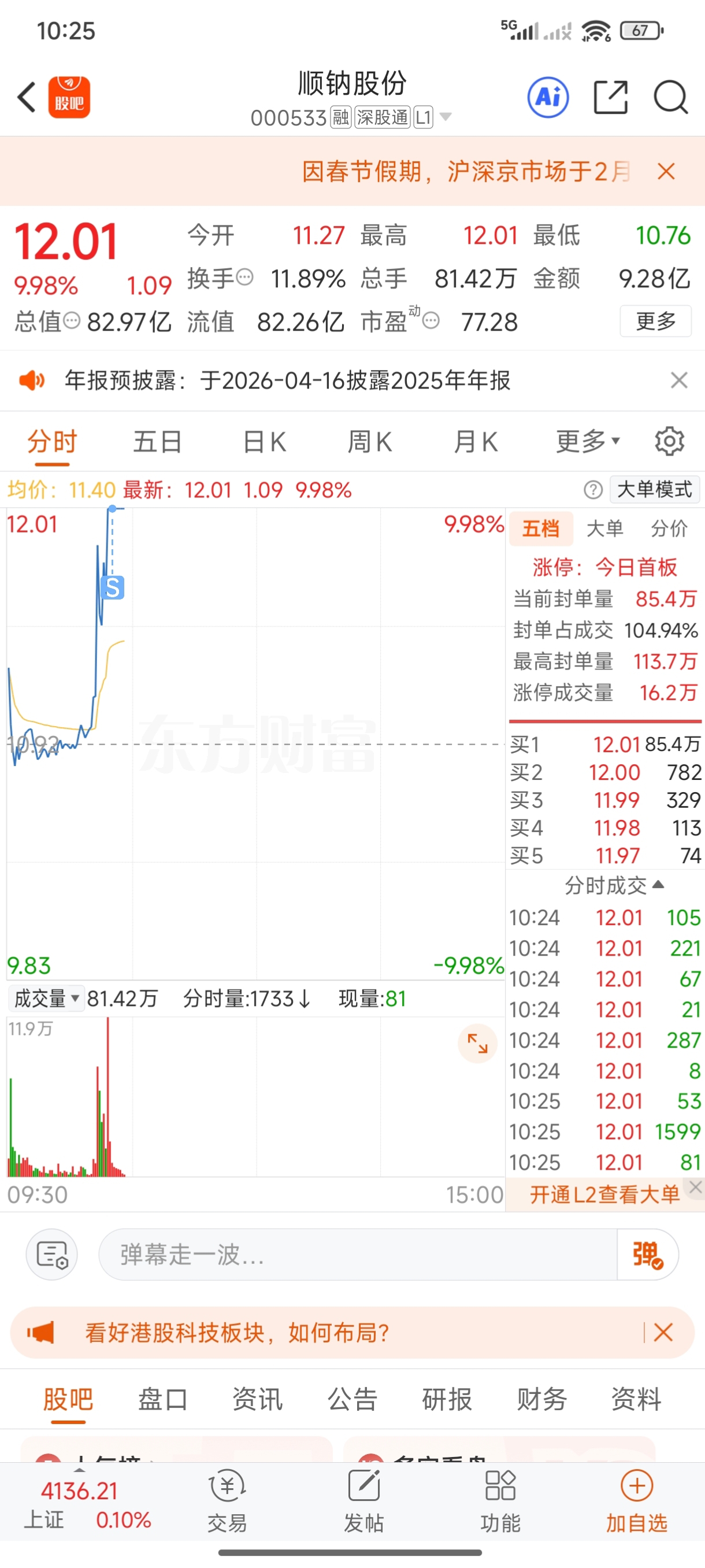 $顺钠股份(SZ000533)$ 此盈己出,入袋为安