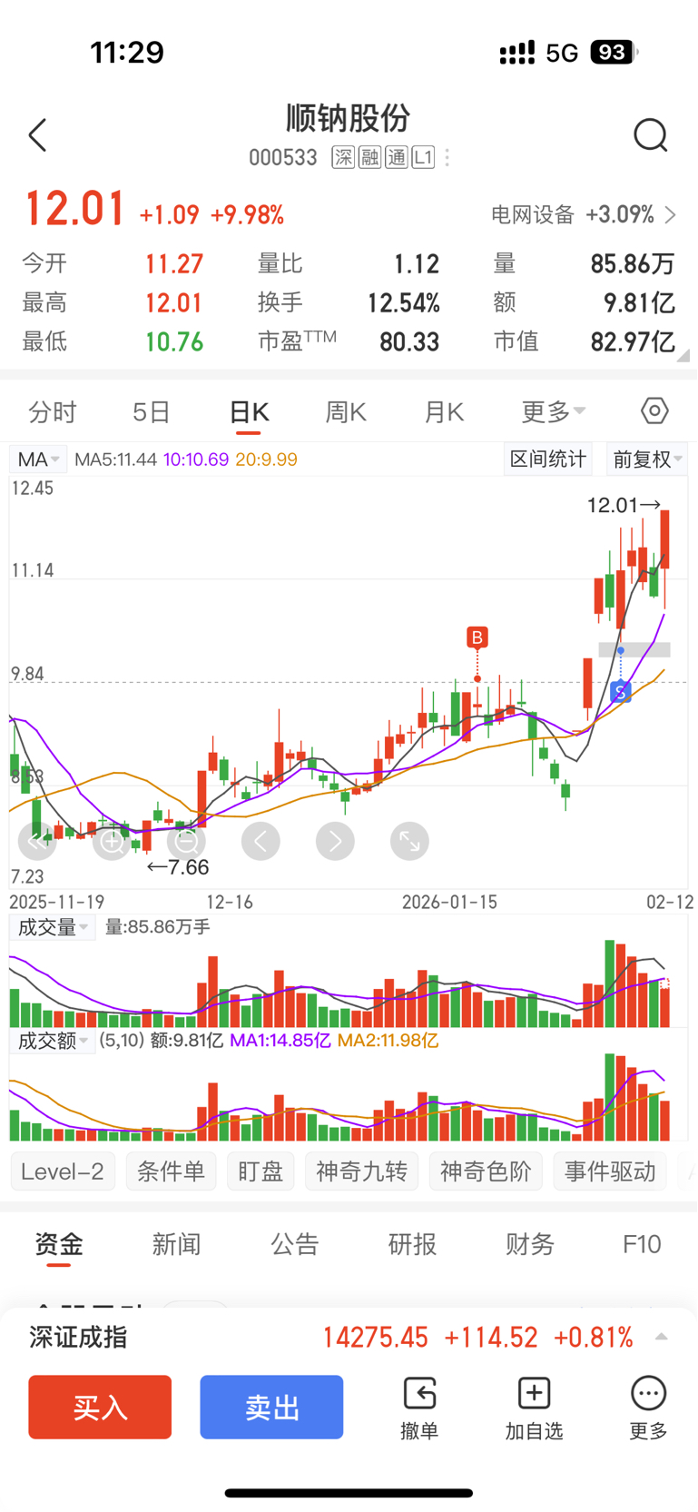 $顺钠股份(SZ000533)$ 前两天赚了20个点走了,今天痛失的大长腿啊,还有明天的