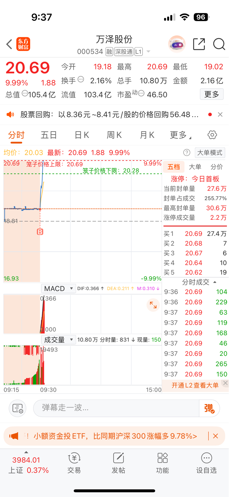 $万泽股份(SZ000534)$ 早上挂单挂错了,没想到因祸得福