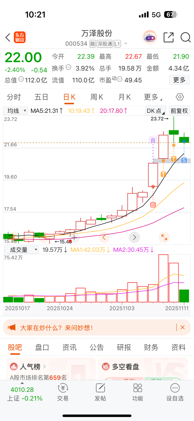 $万泽股份(SZ000534)$ 都清了,寻找下一个目标了