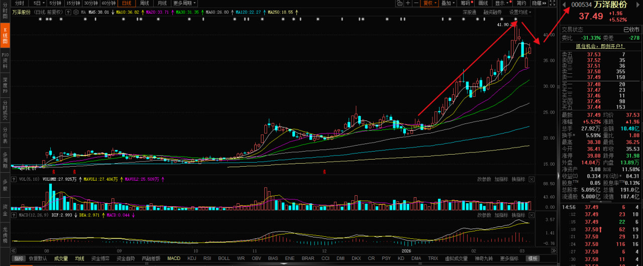 万泽股份(000534)近期军工材料股走强消息面利好。均线多头排列,市场资金持续流入,趋势资金在参与。建议大家轻仓买入!