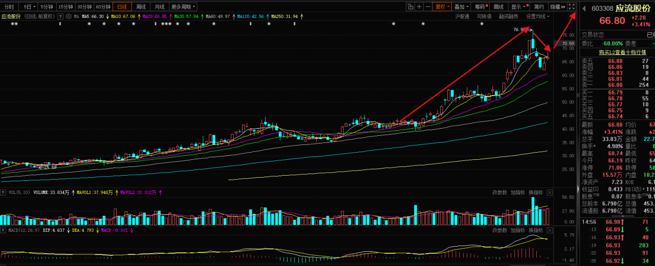 应流股份(603308)航空发动机与高端装备需求持续提升,近期军工及高端装备产业的政策环境整体偏积极。从技术走势看,应流股份具备一定的趋势股特征。短期均线逐渐向上发散,资金推动趋势。建议大家轻仓买入!