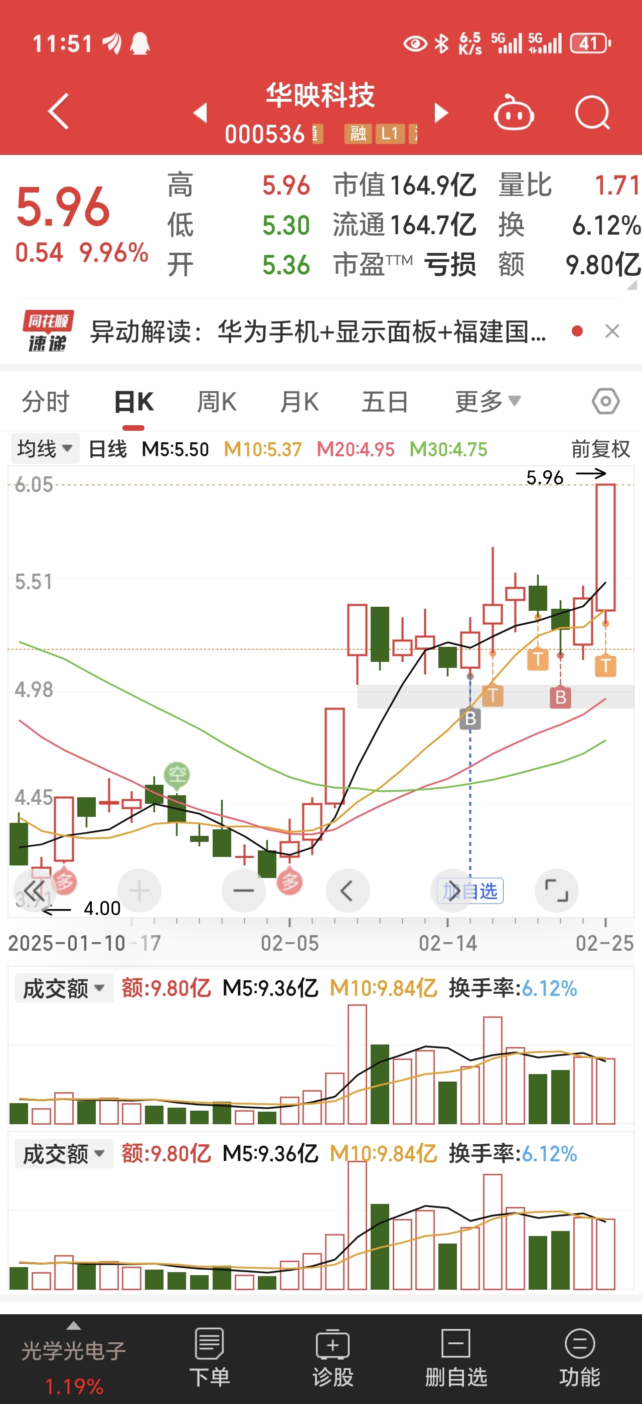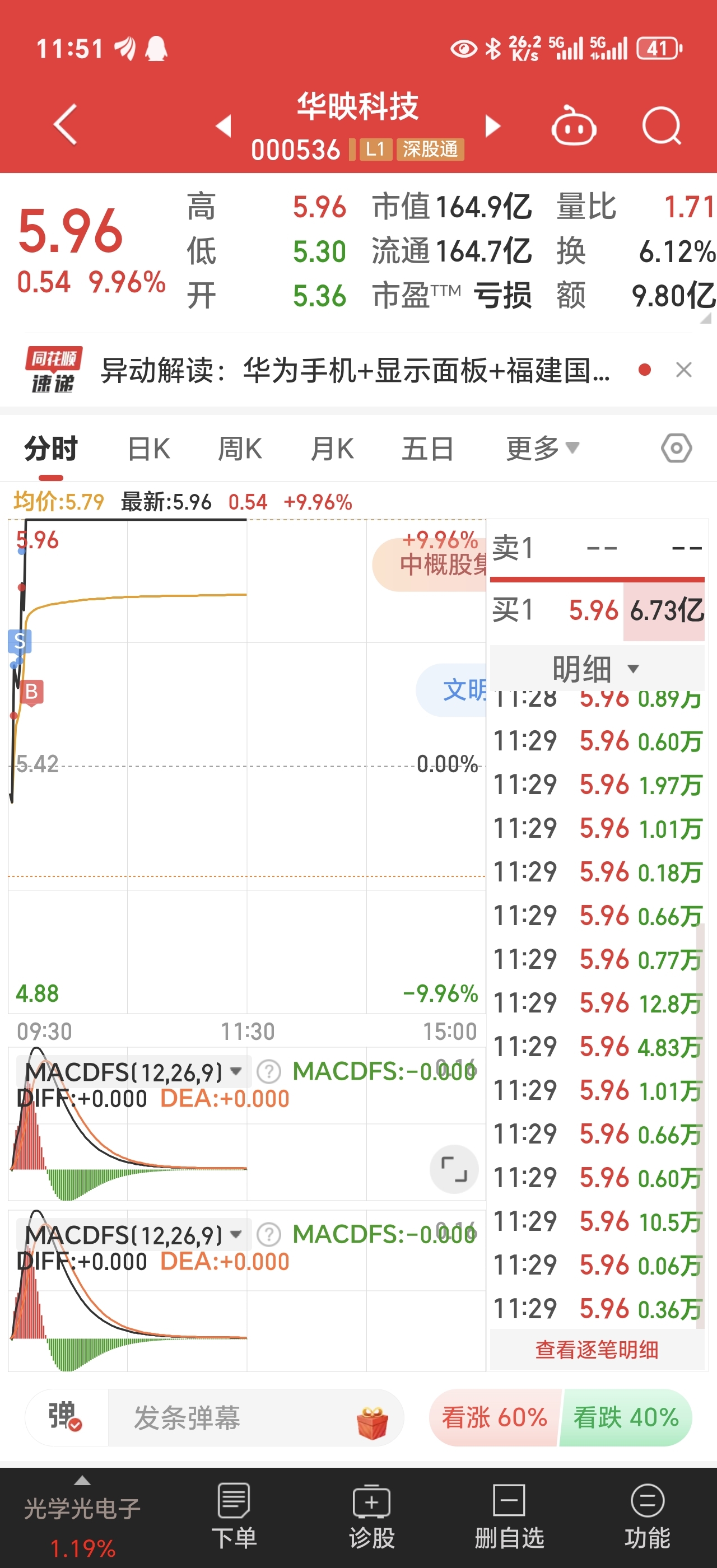 $华映科技(SZ000536)$ 今天能上板,属实很意外,可以看看我以前发的帖子,提过华映,一直都在洗盘,今天上板300w手的封单很强很有气势,只要不出现漏单和炸板的迹象(应该不太可能,撤单都没什么大单走,高度控盘了已经)明天的预期就是起码高开5个点,祝大家天天发大财#复盘记录# #实盘记录#