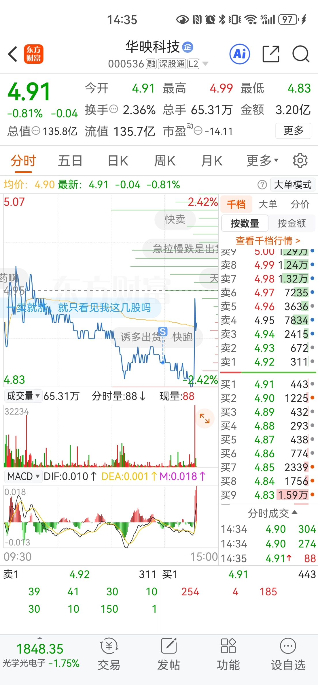 $华映科技(SZ000536)$ 不卖不拉一卖你就拉了