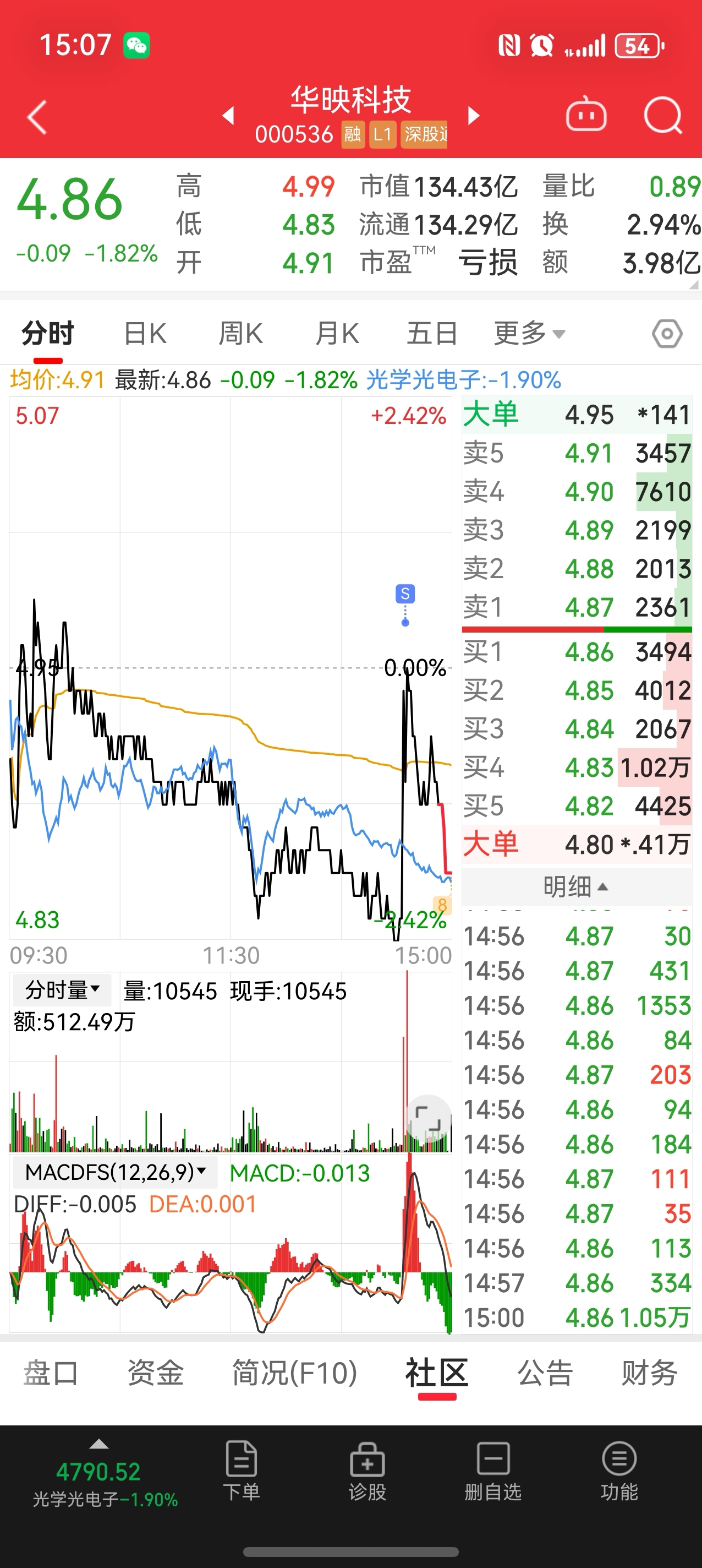 $华映科技(SZ000536)$ 感谢主力不杀之恩,4.97跑了