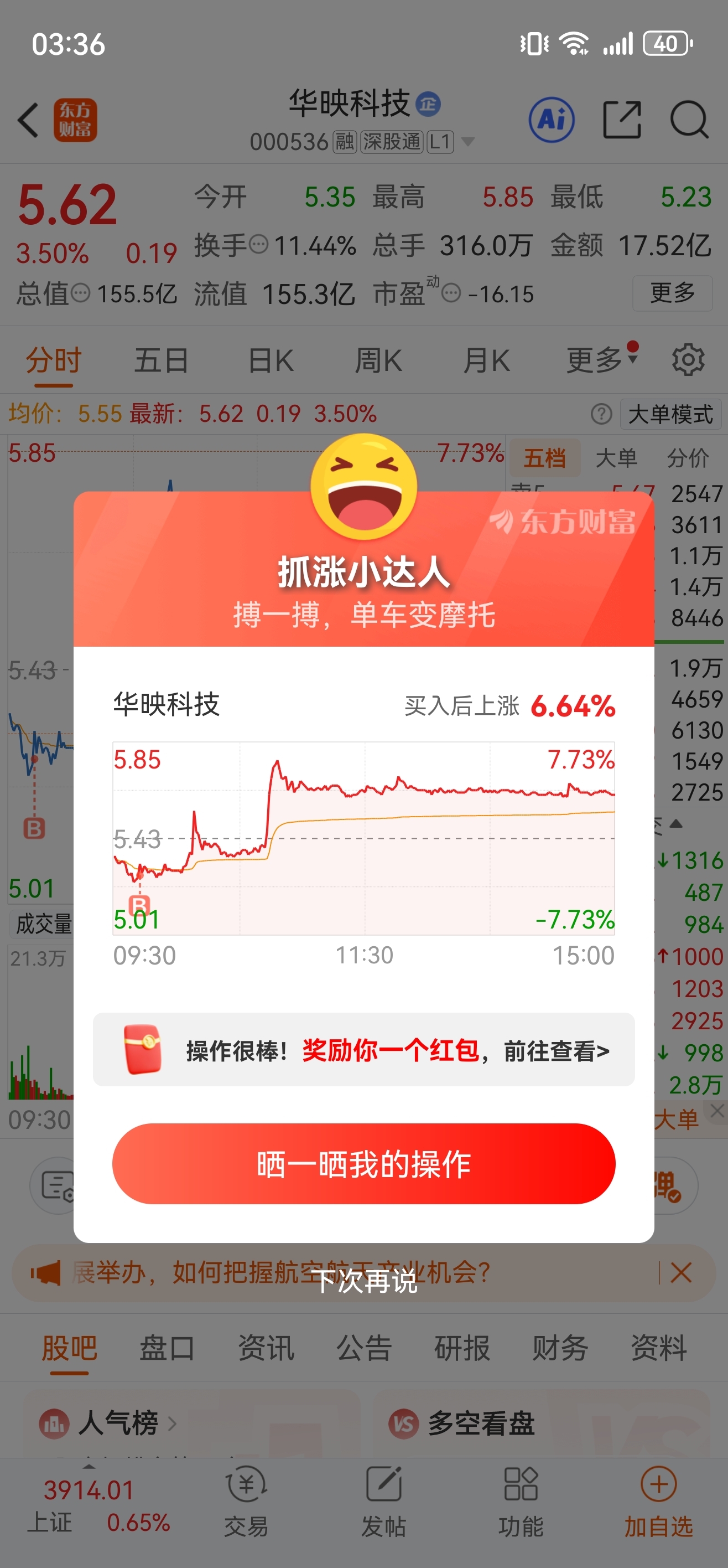 $华映科技(SZ000536)$ 还可以 最近一段时间唯一出手的票