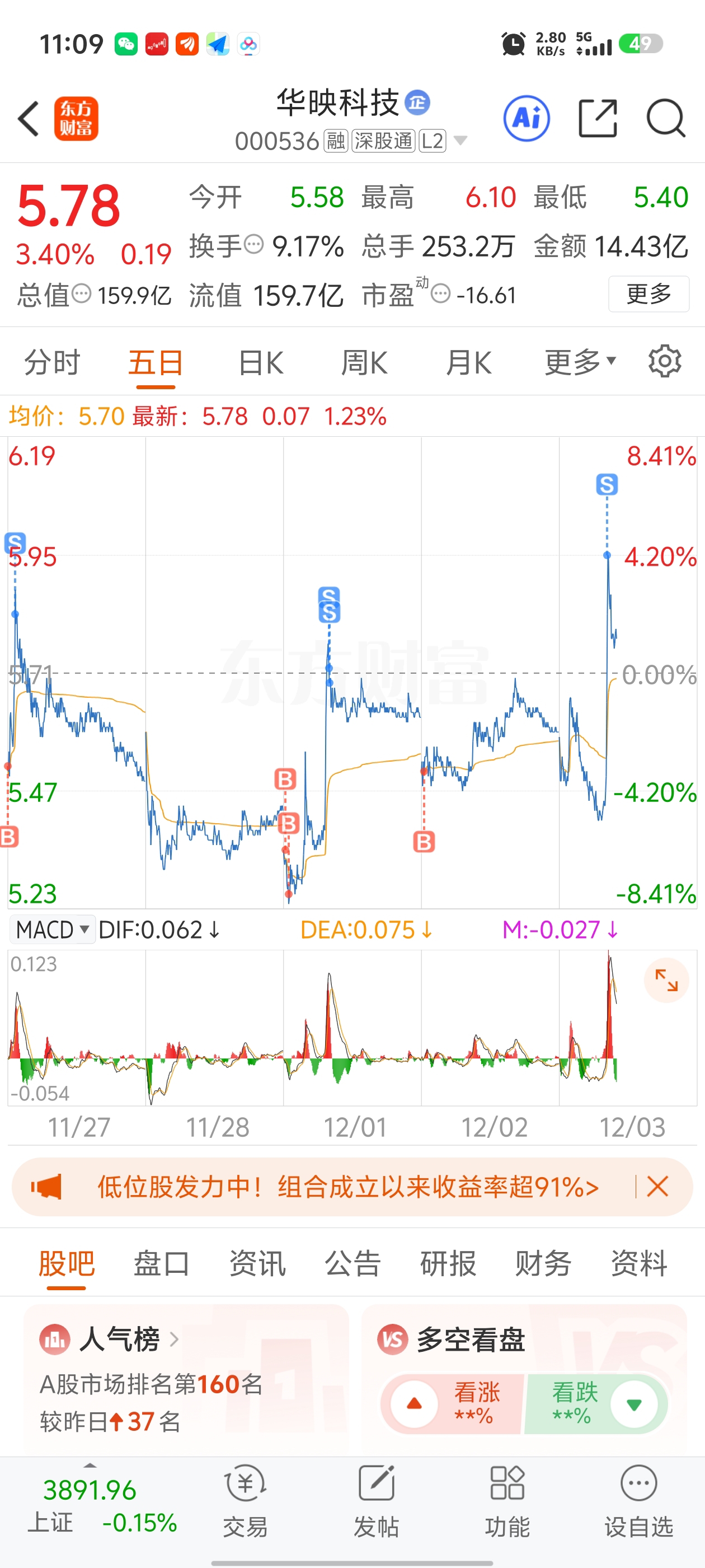 $华映科技(SZ000536)$ 跟着主力做T