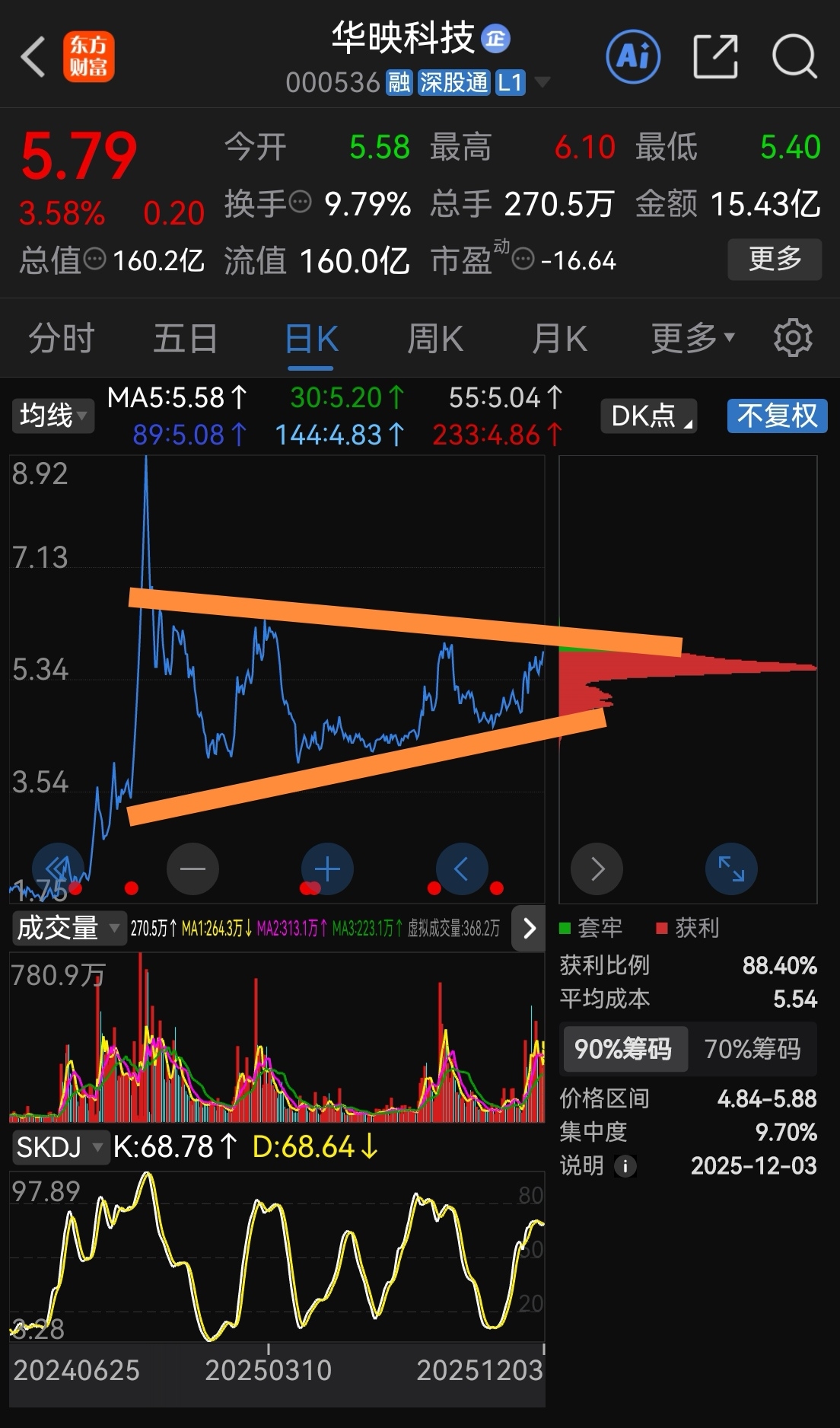 华映科技,日K线图出现长达近一年的大三角旗形整理形态,为大A股中少有!换庄已经在悄然进行!