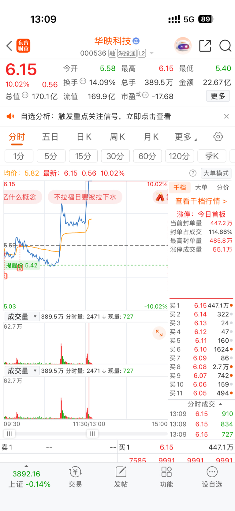 $华映科技(SZ000536)$ 下面5.35还有一笔没买到